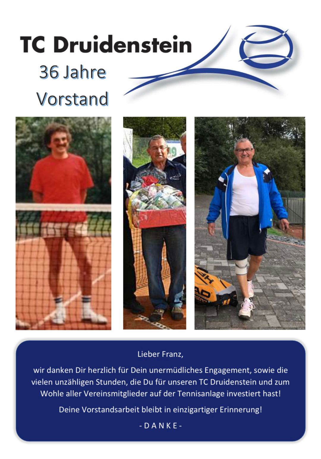 Der Vorstand bedankt sich auch Namen des gesamten Vereins bei Franz Böhmer für 36 Jahre tolle und beispiellose Vorstandsarbeit!